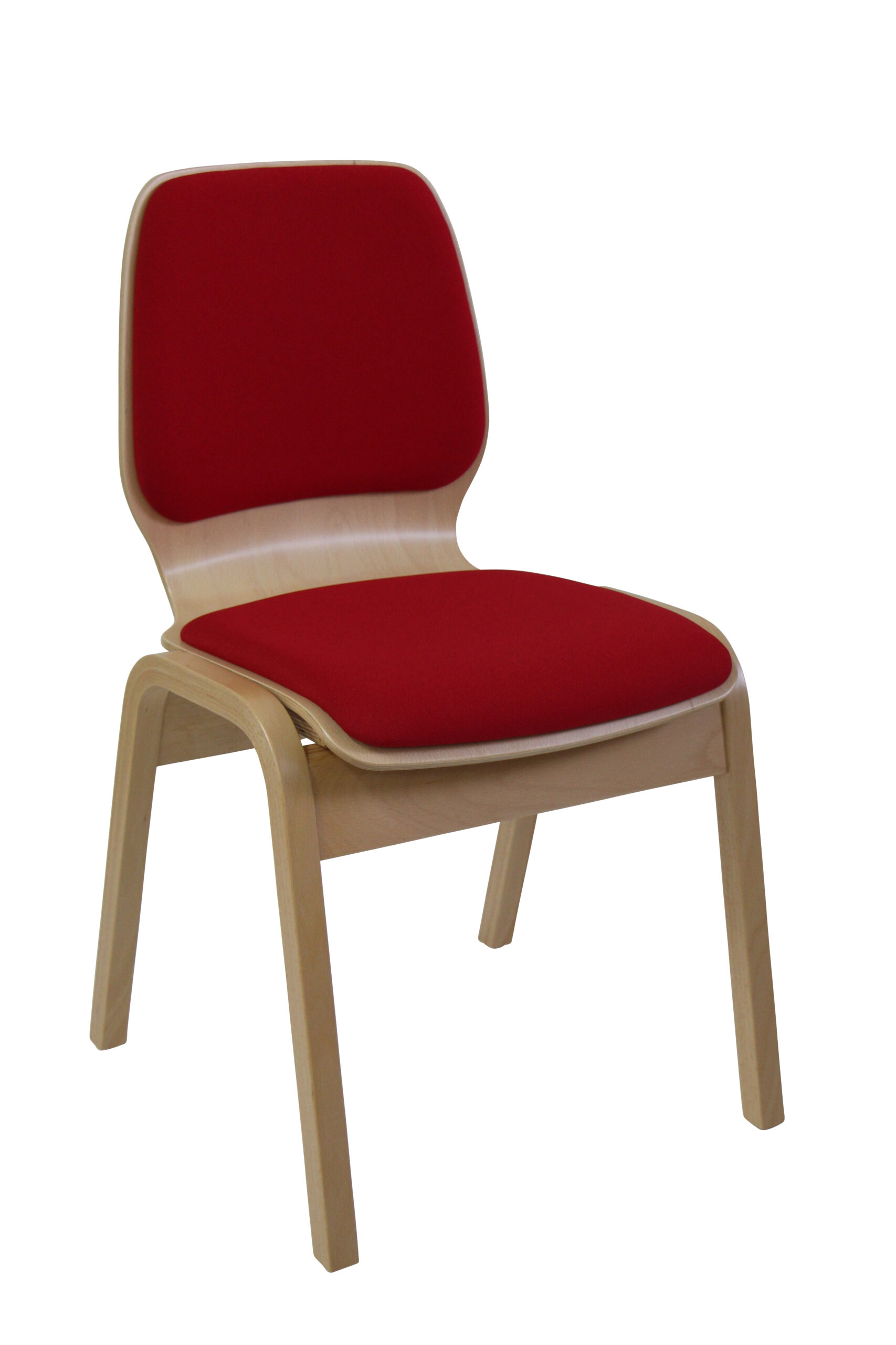 FAGUS ist ein Sperrholz-Schalenstuhl mit einem Gestell aus Furnierschichtholz. Die Stühle lassen sich nahezu senkrecht stapeln. Verschiedene Schalenformen stehen zur Wahl