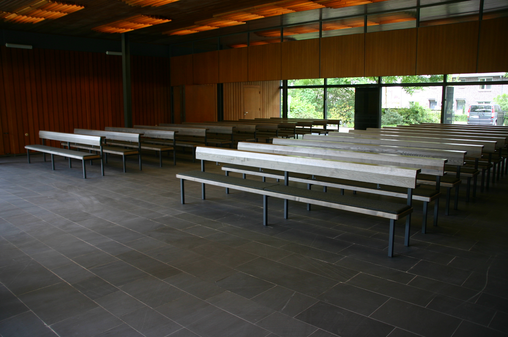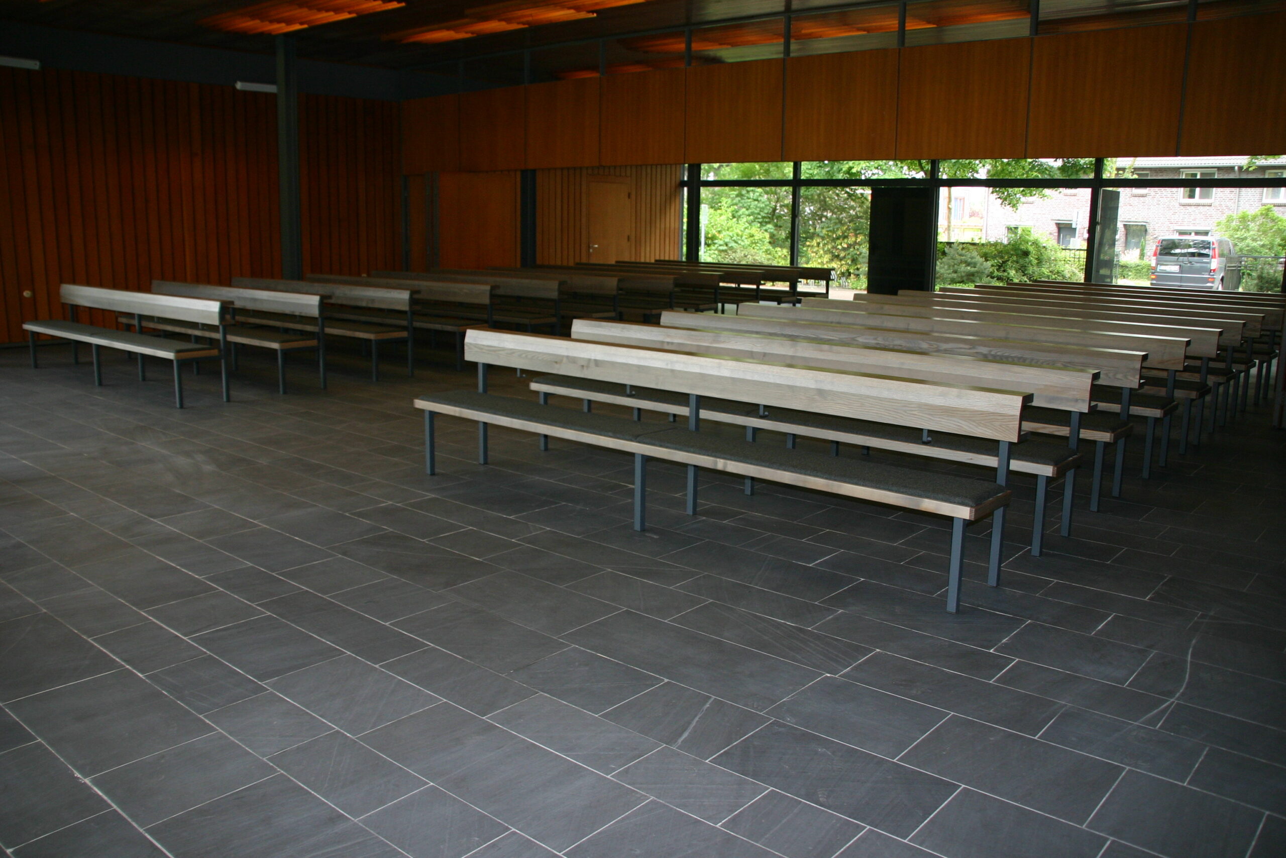Aussegnungshalle, Esche, Stahlgestell
