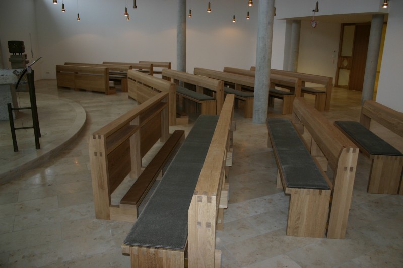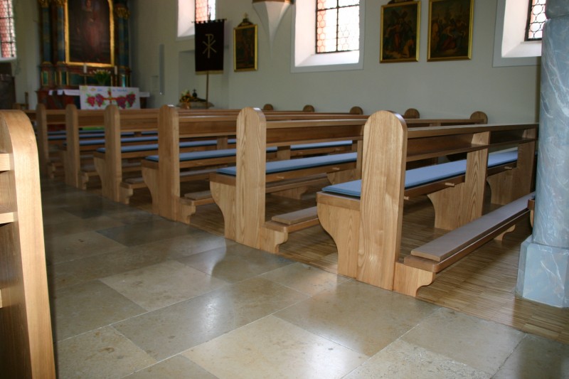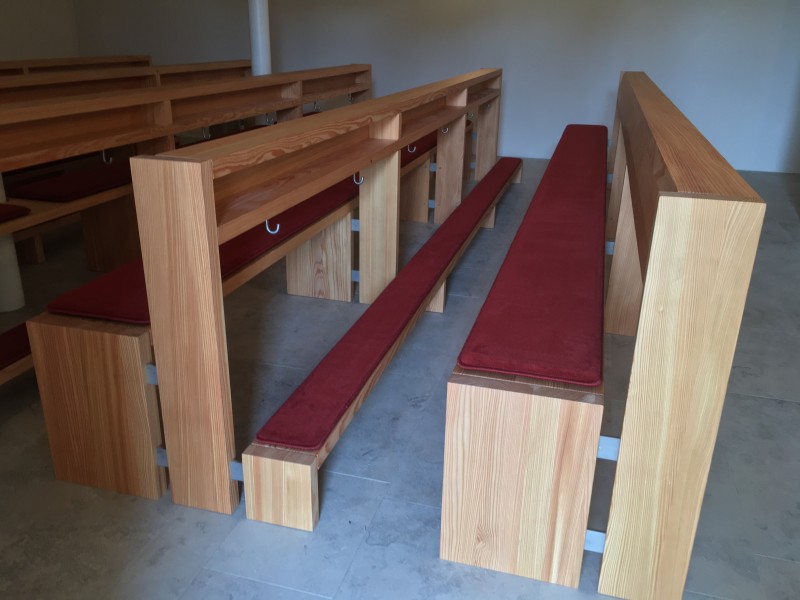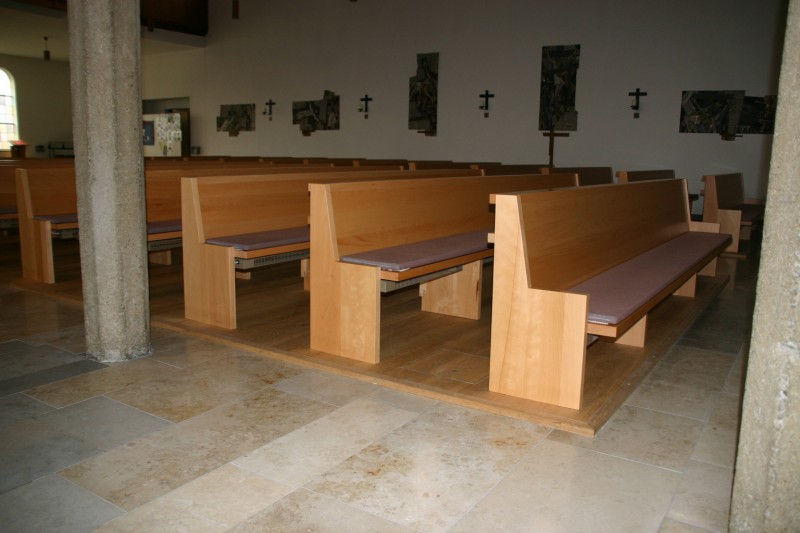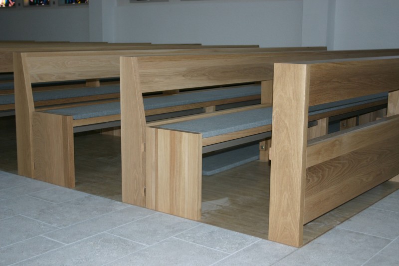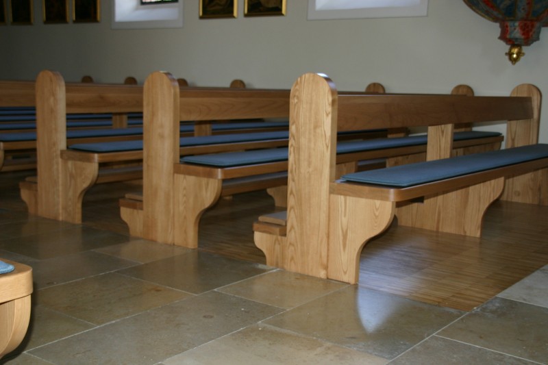 Kirchenbänke, Kirchenbankfestpolsterungen, Kirchenbankpolster, Kirchenstühle, Kniebrett, Kniepolster, Sitzauflage
