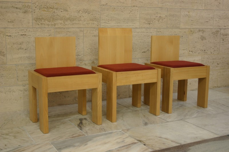 Priestersedes in Buche mit gepolstertem Sitz und mit Rückenlehne. Sedilien für Konzelebranten oder Minsitranten mit niedreiger Lehne. Auch ohne Lehne lieferbar.