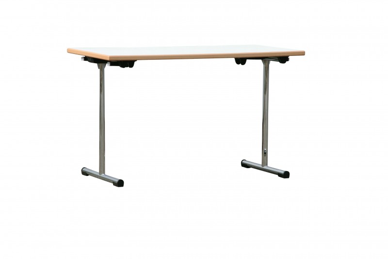 Tische sind mit Massivholzumleimern oder als einfache Platte mit Gestellen aus verchromtem Rundrohr erhältlich. Unterschiedliche Gestellformen stehen zur Wahl.